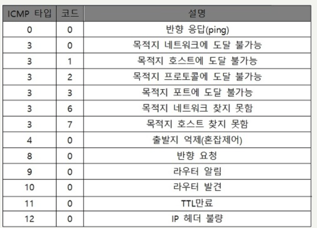 - Type : ICMP의 업무, 즉 어떠한 용도로 사용되는 ICMP를 나타냄