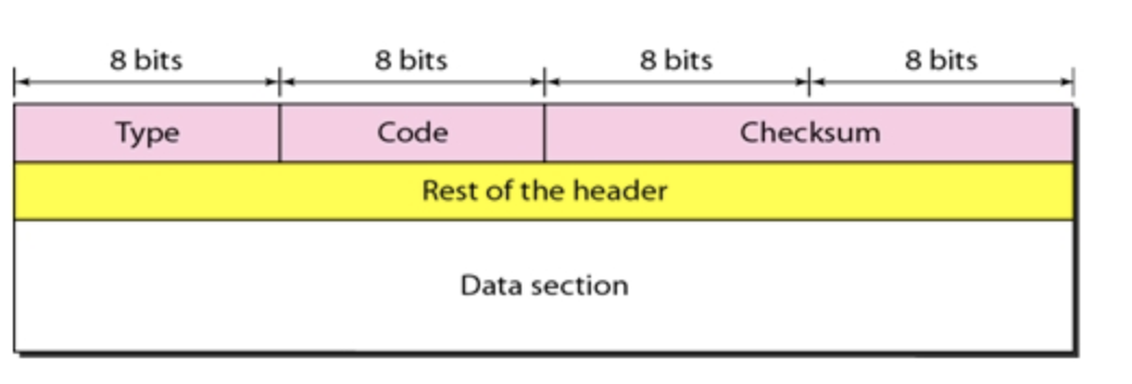 - Code : ICMP Type의 세부 내용을 나타내며 이 부분은 Type과 조합을 이루어 ICMP 메시지의 목적과 용도를 나타냄