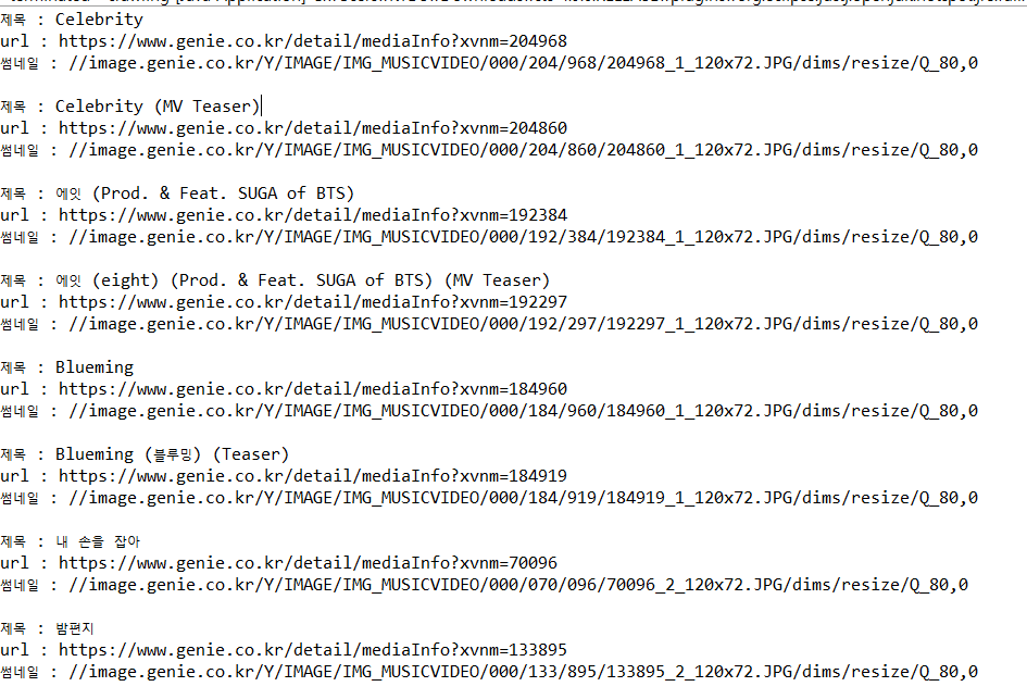 * artist의 이름을 입력하는 쿼리 부분을 별도의 변수로 받아서 name 변수만 바꾸면 다른 가수의 MV 크롤링 가능