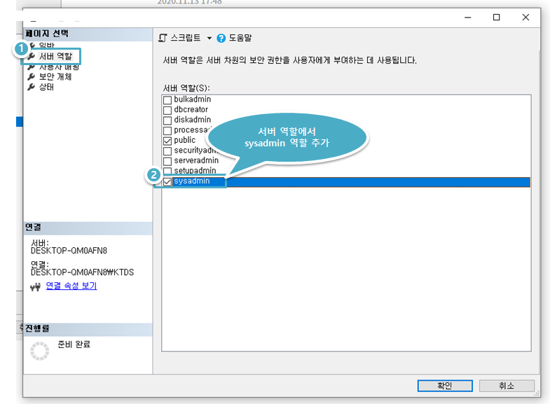 - MS-SQL에서 관리자 권한(sysadmin)을 갖는 계정 생성하기