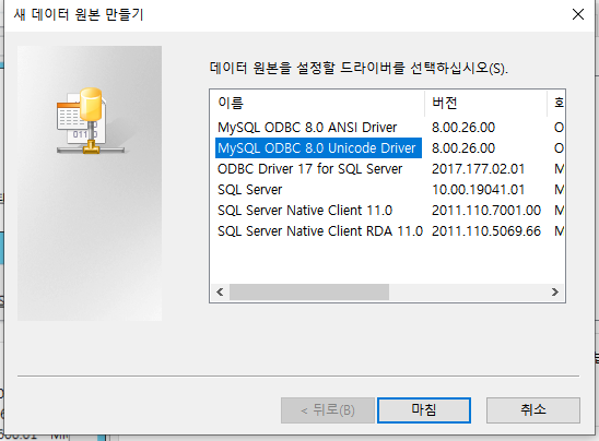 MySQL ODBC Uicode Driver 선택