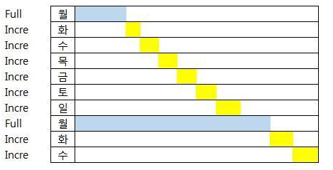 증분백업은 마지막에 받은 Differential Backup 이후의 변경/추가된 Data 백업하는 방식
