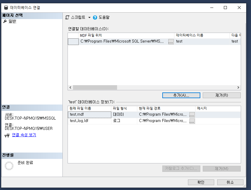 mdf 파일, ldf 파일만으로도 복원이 가능