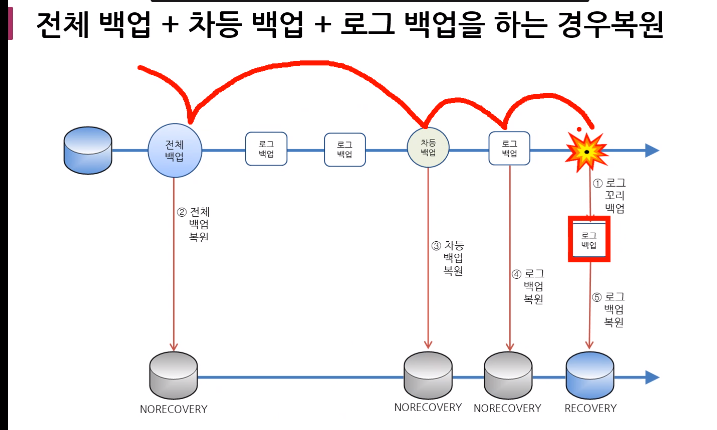 2. 그 전체 백업 이후로 마지막 차등 백업 복원