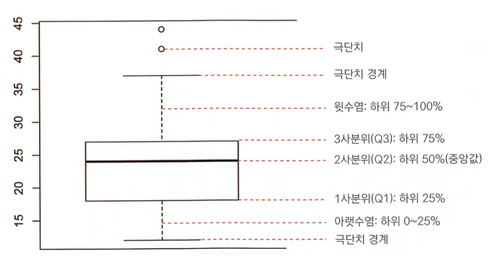 - 사분위범위(IQR) : 25번째 백분위수와 75번째 백분위 수의 차이