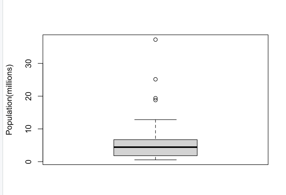boxplot(state[["Population"]]/1000000,ylab="Population(millions)")