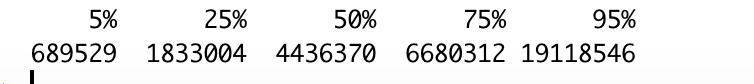 quantile(state[["Population"]],p=c(.05,.25,.5,.75,.95))