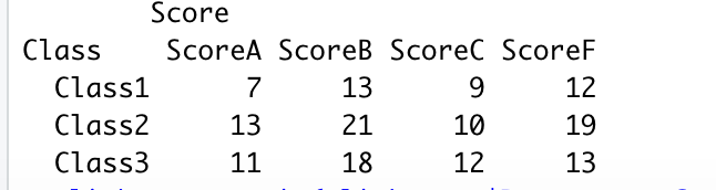 "Score"=c("ScoreA","ScoreB","ScoreC","ScoreF")) // 행이름