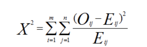 귀무가설 H0가 사실일 때 자유도(m-1)(n-1)인 카이제곱분포에 근사