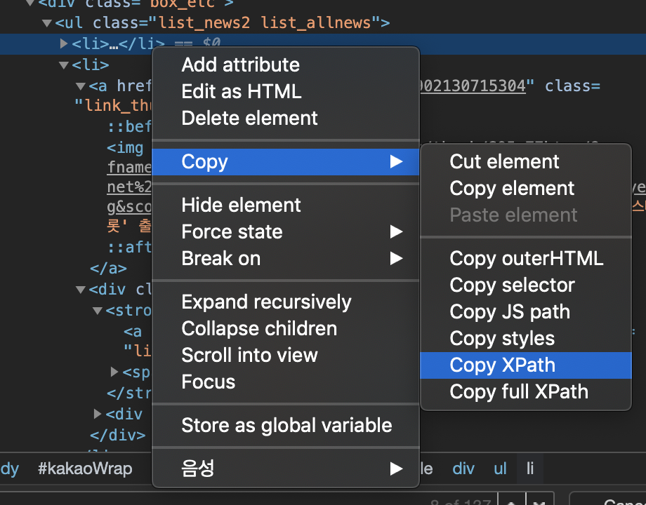 - 개발자 도구로 CSSSelector 확인