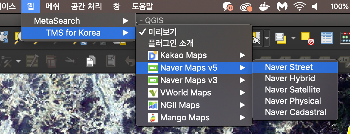 웹 > TMS for Korea 선택 > Naver Maps 선택 > Naver Hybrid 선택