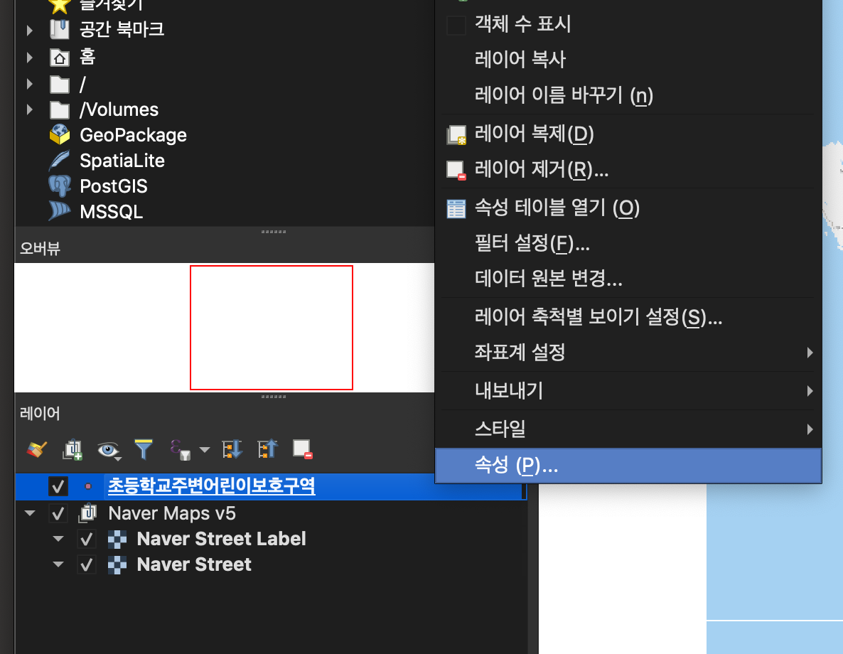 초등학교 주변 어린이 보호구역 오른쪽 마우스 > 속성