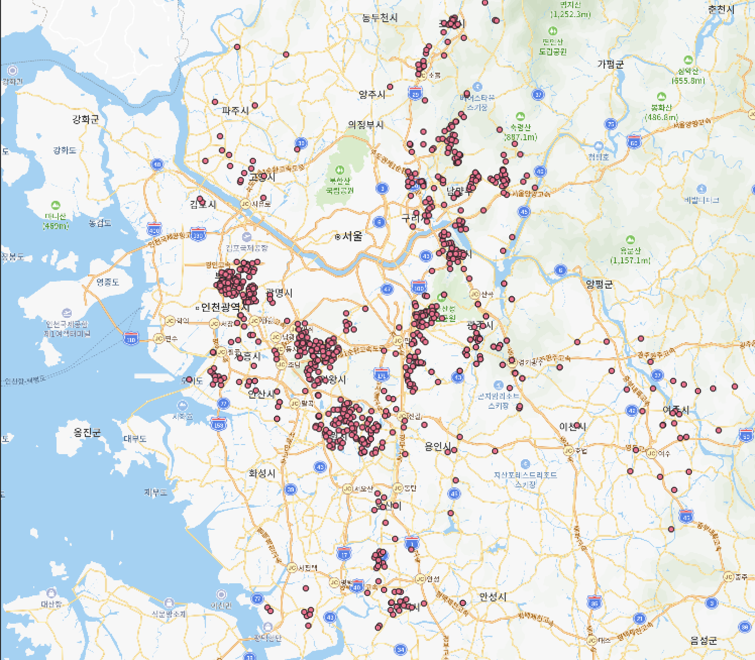- CSV 파일을 열어 네이버 지도 위에 layer를 올려 공간시각화 확인