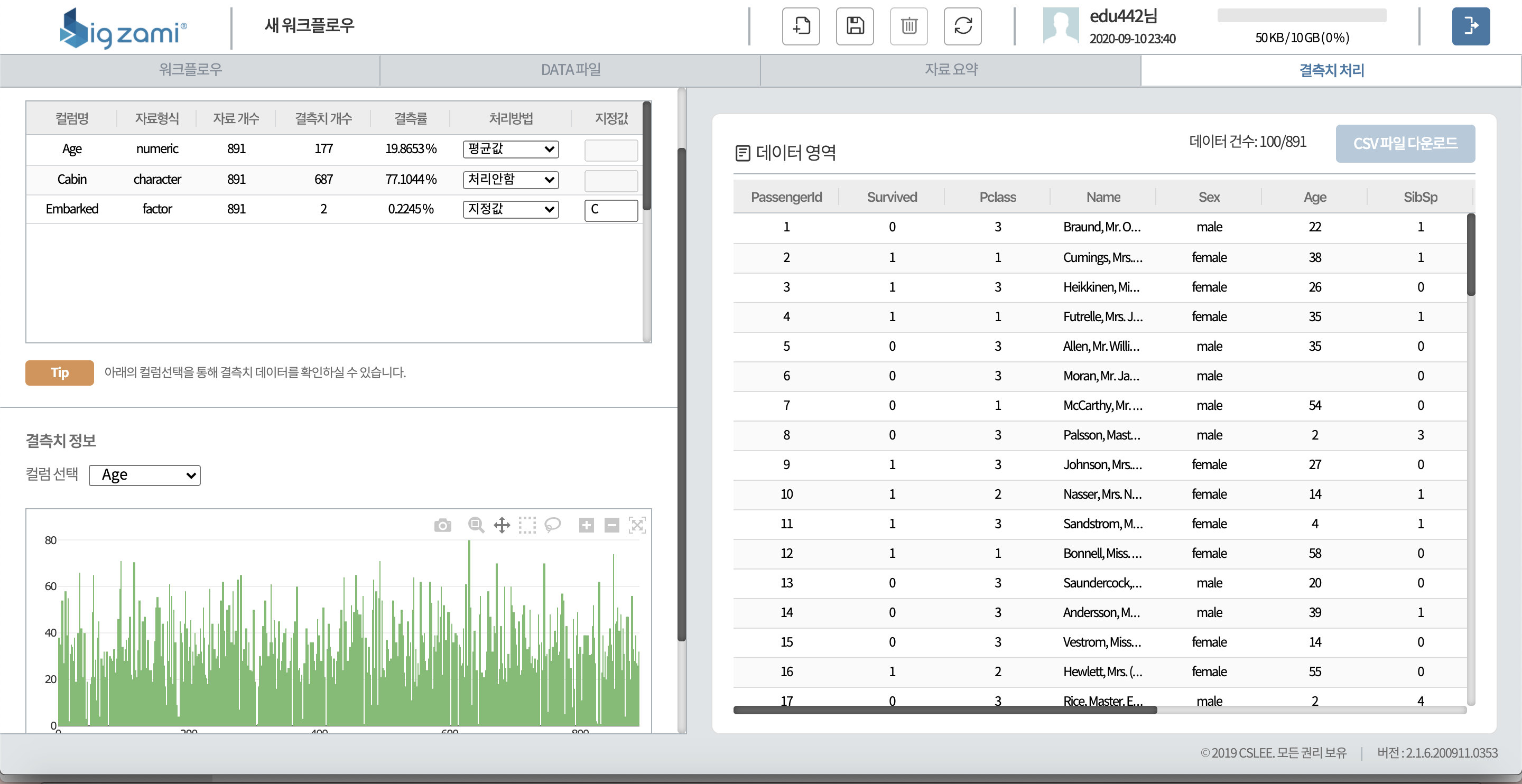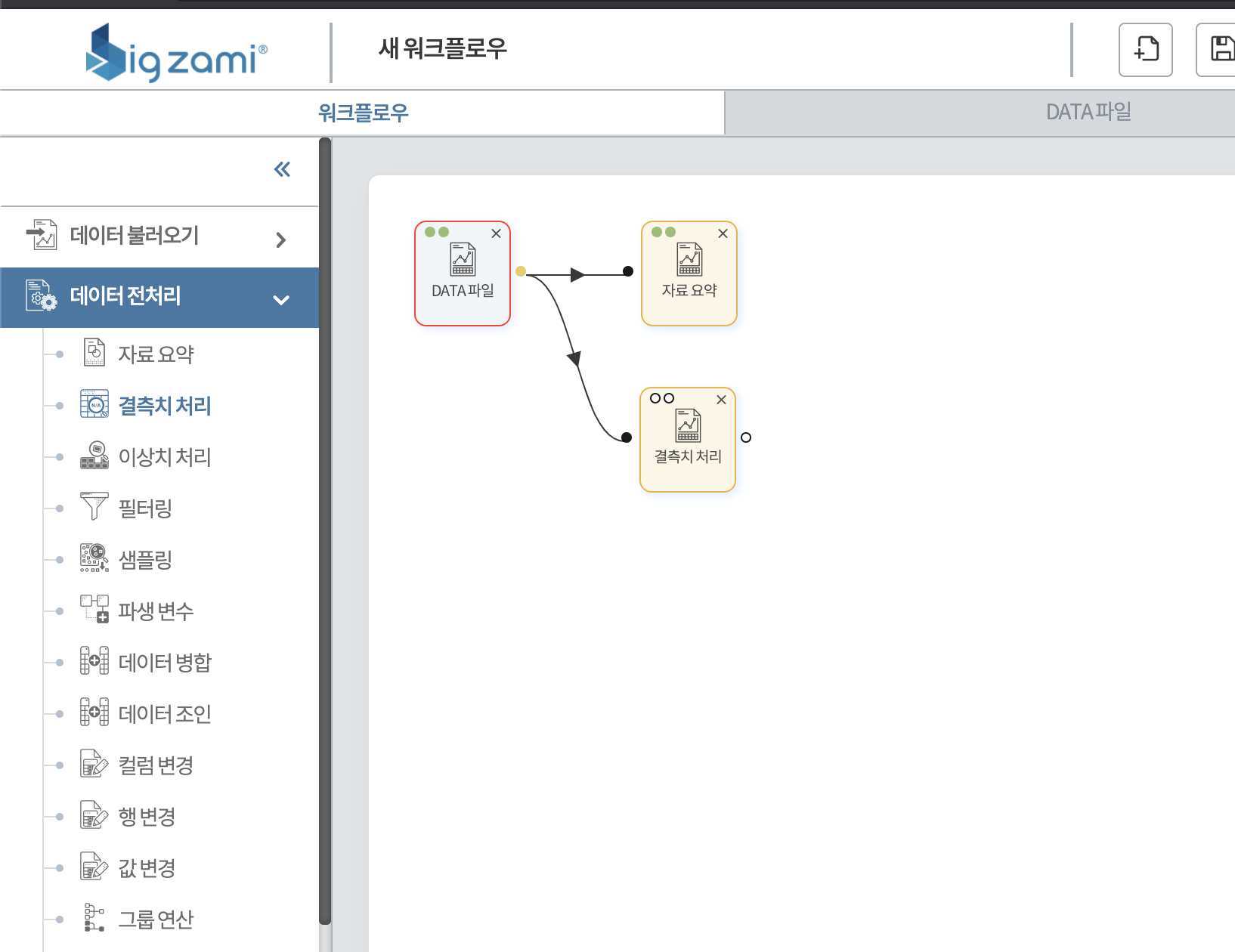 - 다양한 데이터 전처리 기능 (결측치 처리, ROW 병합, 이상치 처리 등)