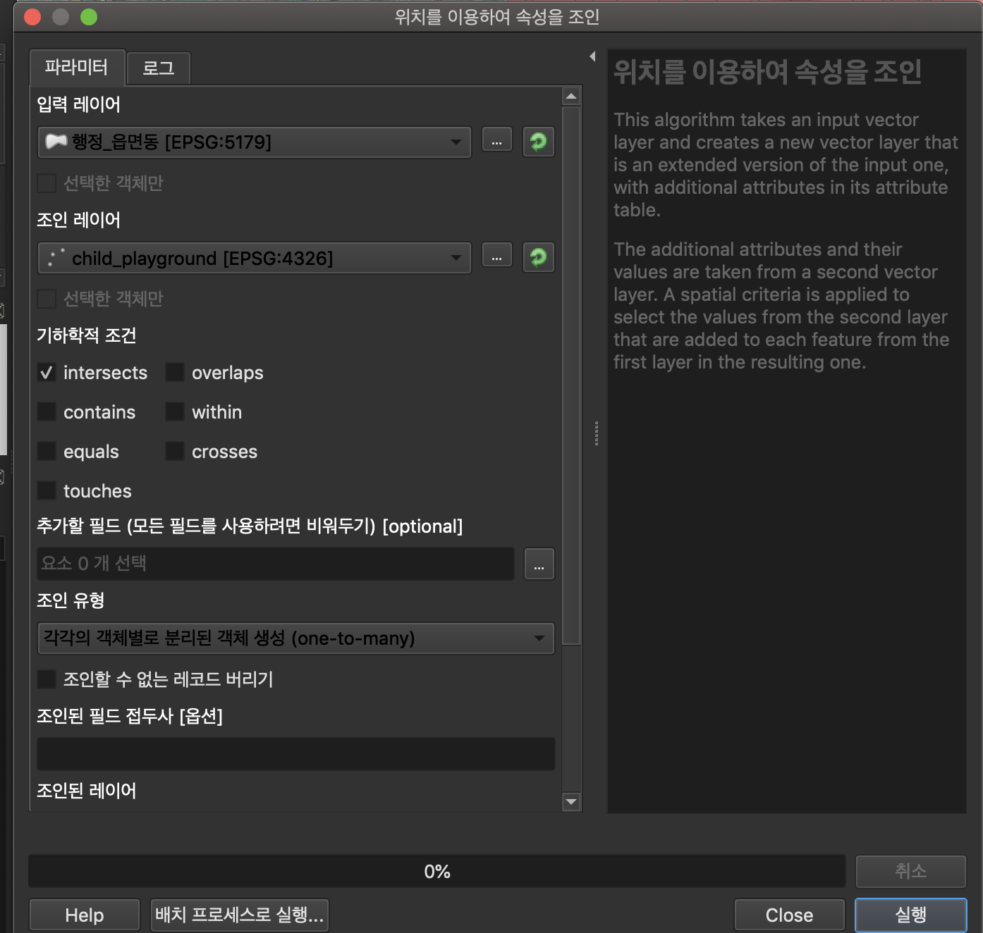 조인 레이어 : 결합하고자 하는 공간 벡터 레이어 선택