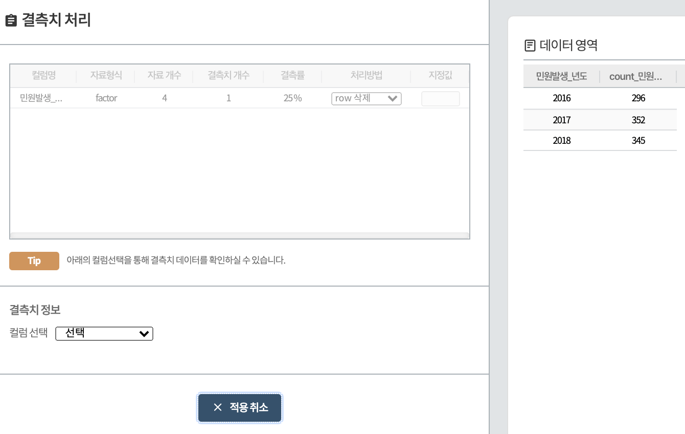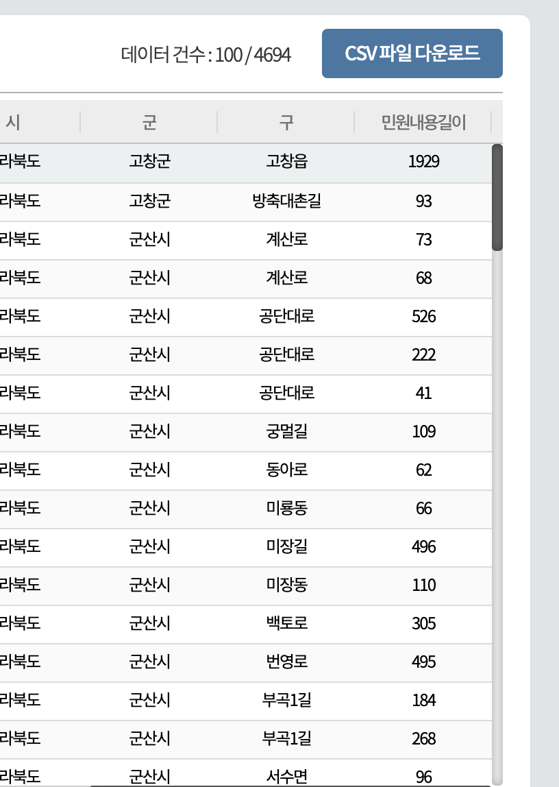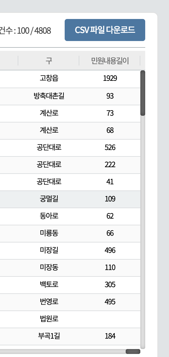 - 민원내용길이가 필터링 완료된 데이터의 컬럼 변경