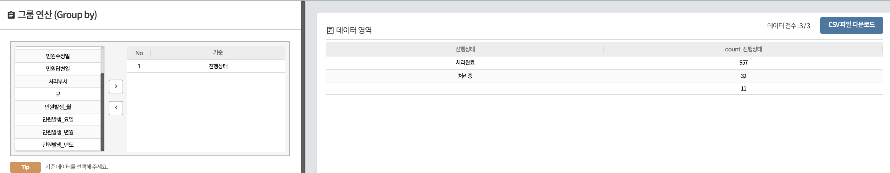 - 파생변수 생성한 데이터로 돌아가 그룹 생성 (진행상태)