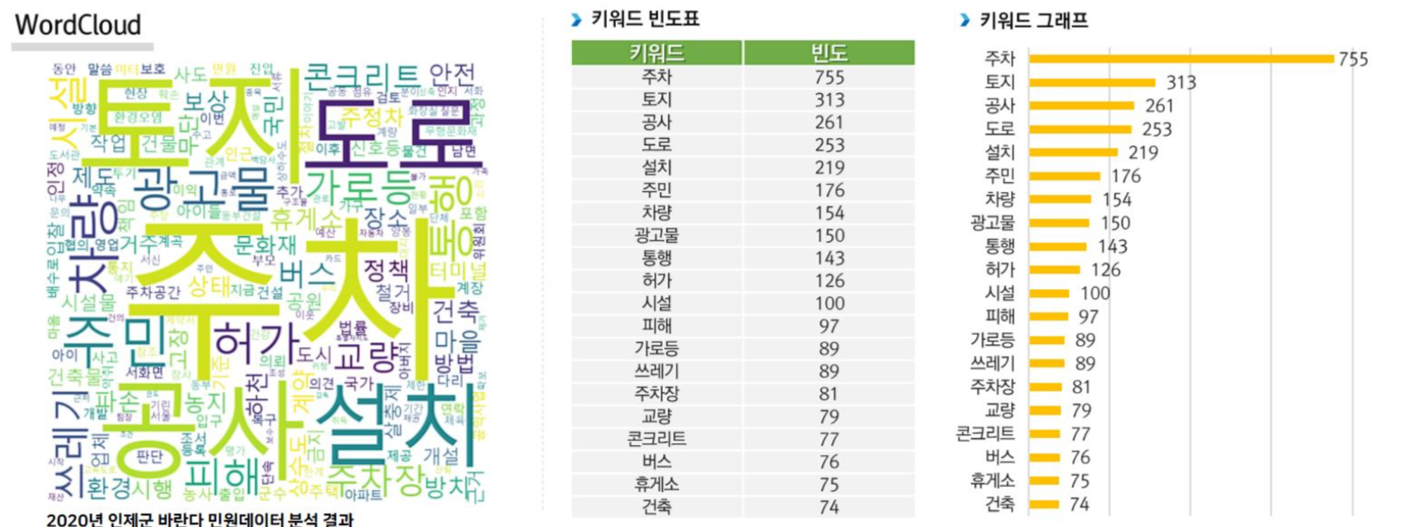 - 본 민원 표준분석 모델에서는 그래프(Graph)와 워드클라우드(WordCloud)를 활용해 EDA 수행