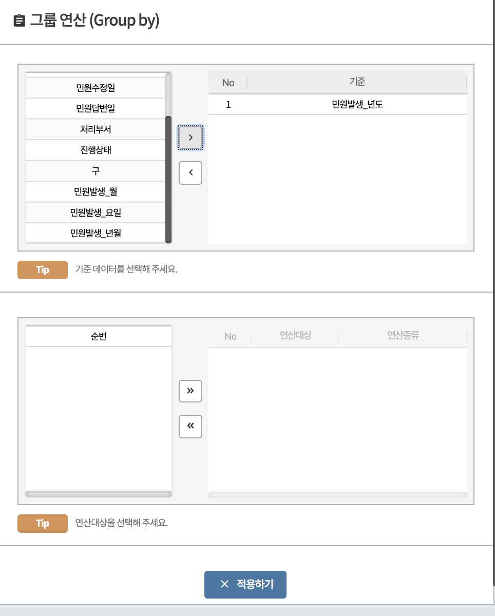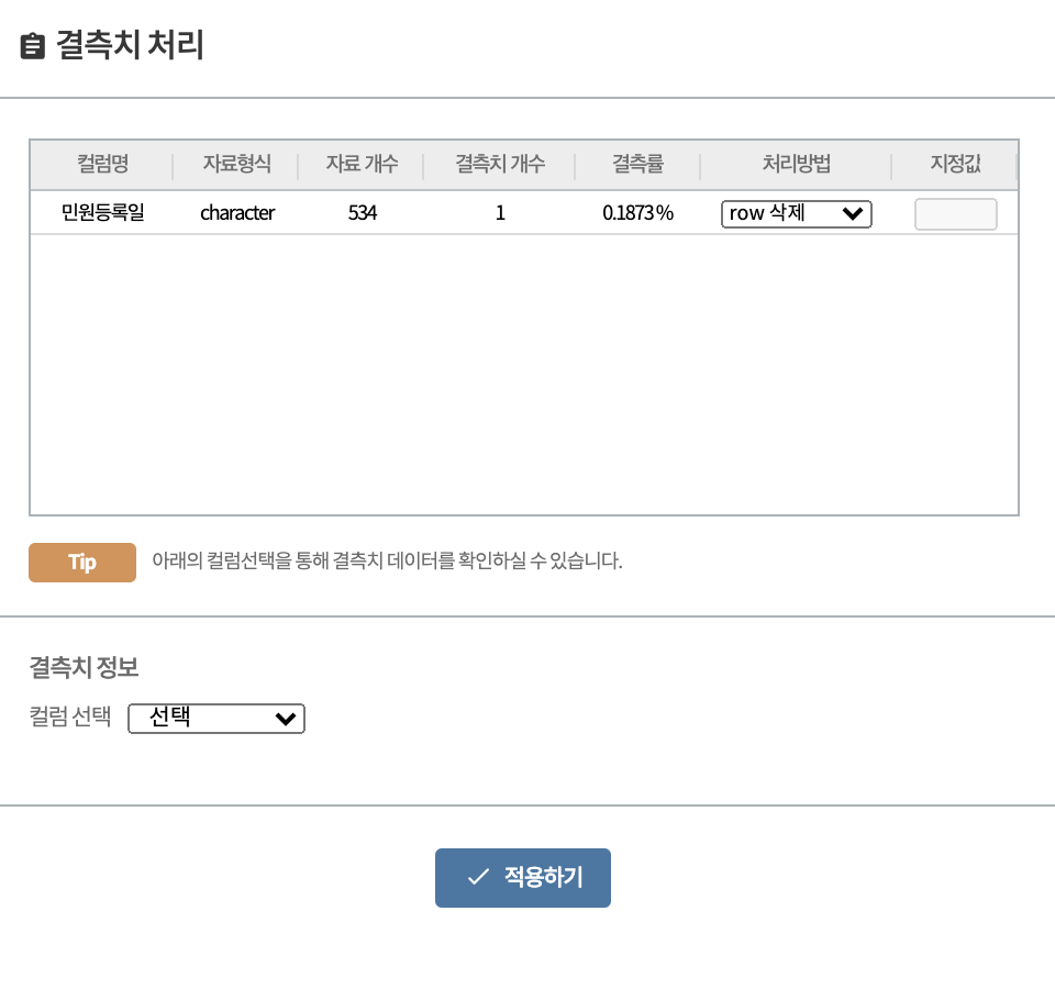 - 빈테이블에서 값변경 (시,군,구에 미 등 록을 선택하고 적용)