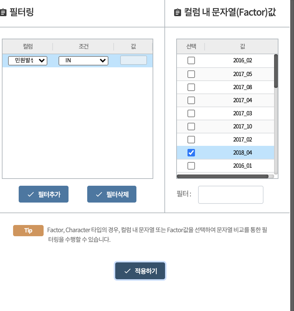 - 파생변수 생성한 데이터에 필터링 (2018년 4월 데이터)