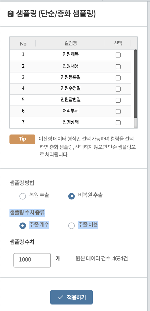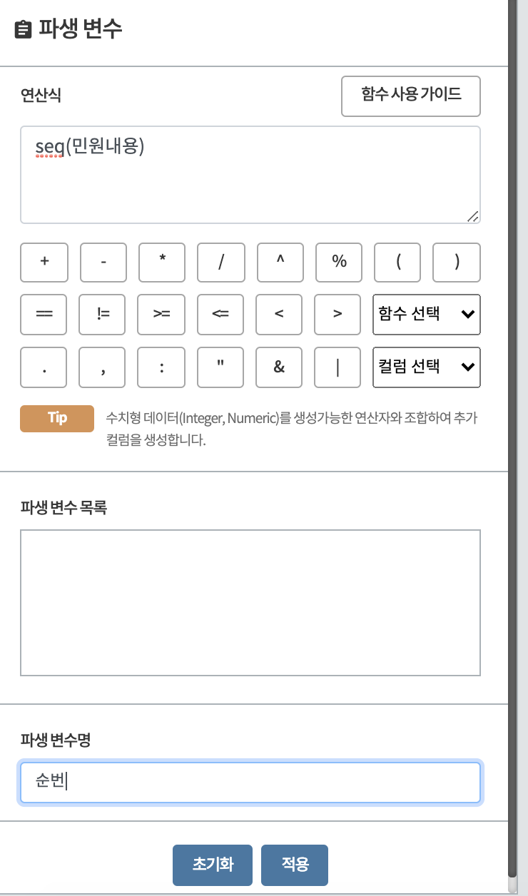 - 샘플링 완료된 데이터에 파생변수 생성(순번 변수)