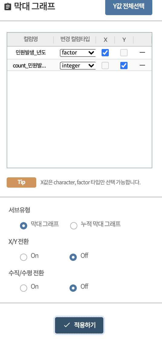 - 결측치 처리된 년도 그룹연산 데이터로 막대 그래프 생성