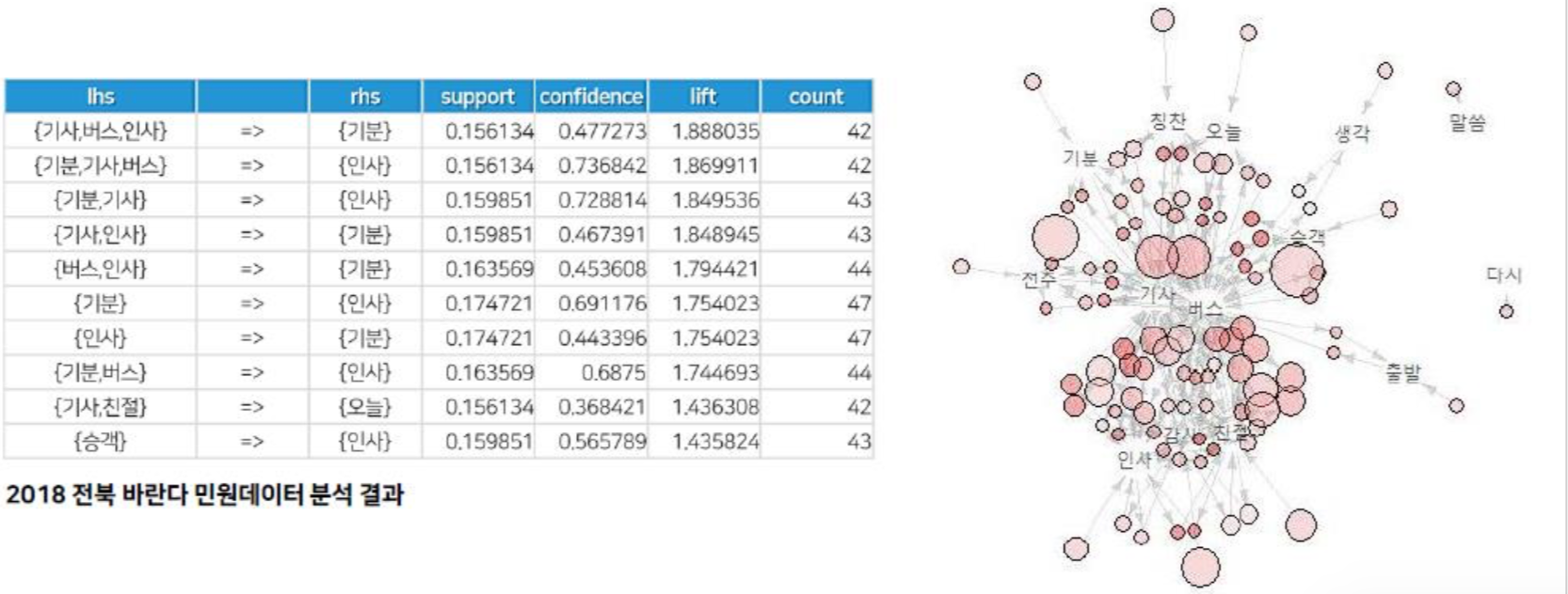 신뢰도(Confidence) : 좌측 단어를 포함하는 민원에서 우측 단어도 나타날확률