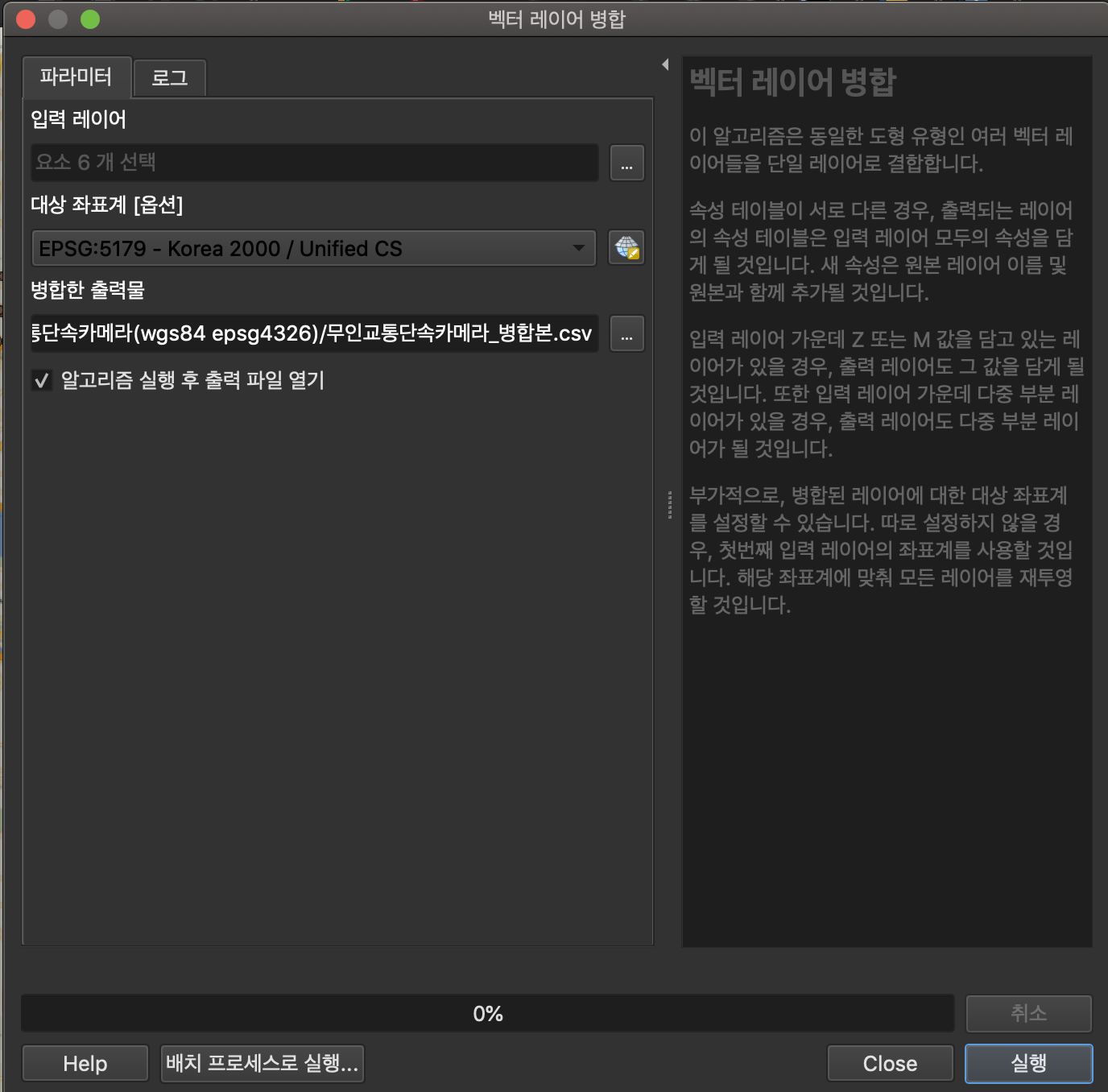 벡터 -> 데이터 관리 도구 -> 벡터 레이어 병합