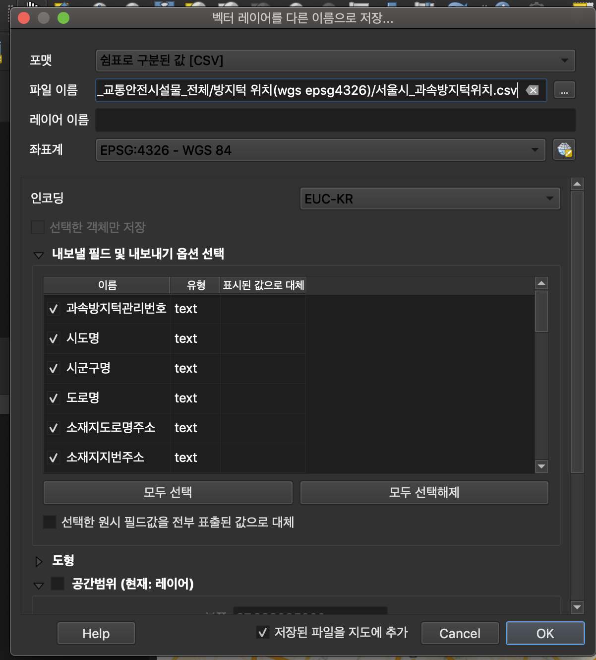 필요한 필드만 체크해서 최종 파일로 저장
