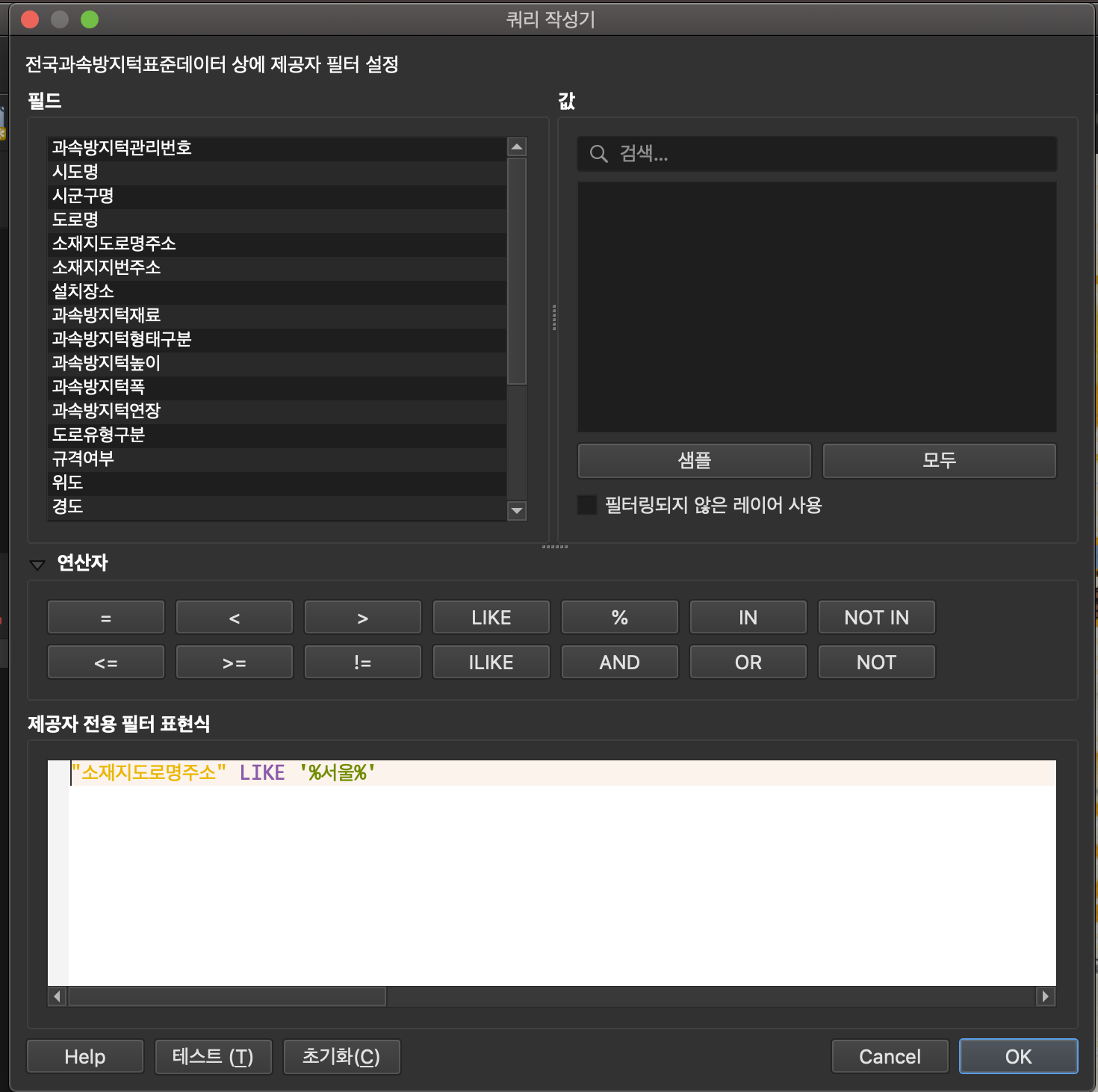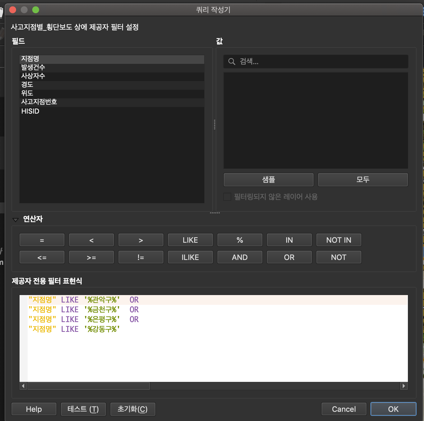 생성한 교차영역 레이어 우클릭 -> 필터 설정