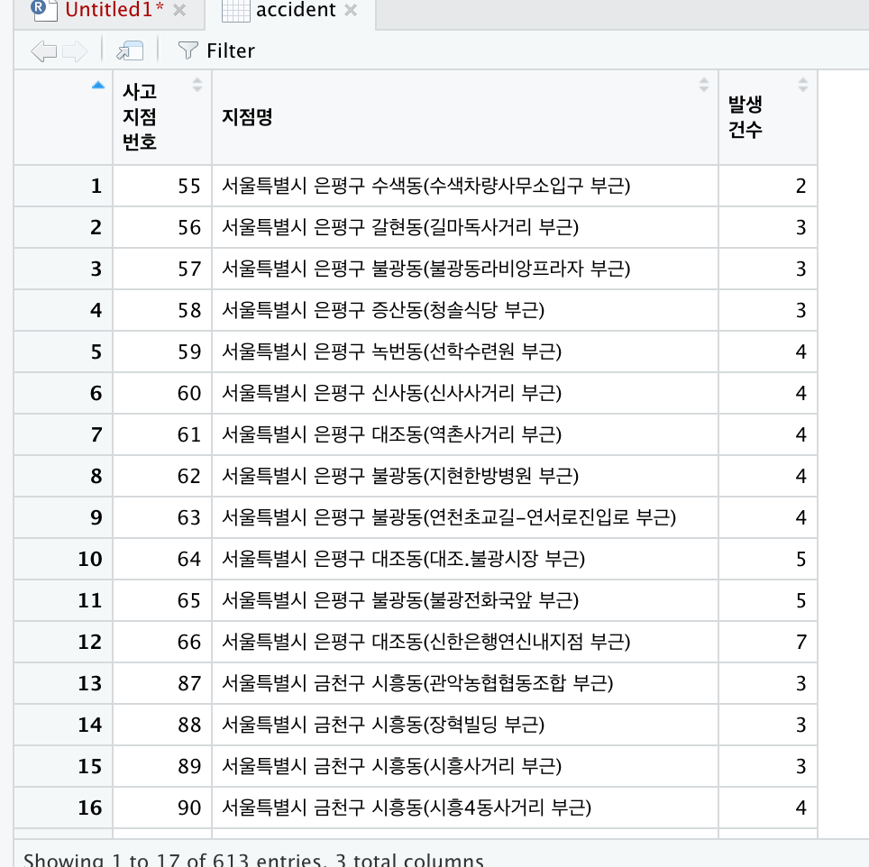 accident <- select(accident,사고지점번호,지점명, 발생건수)