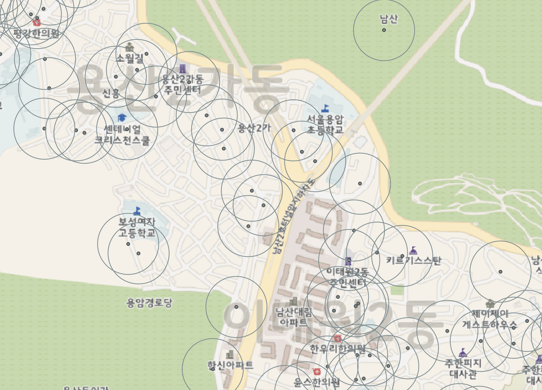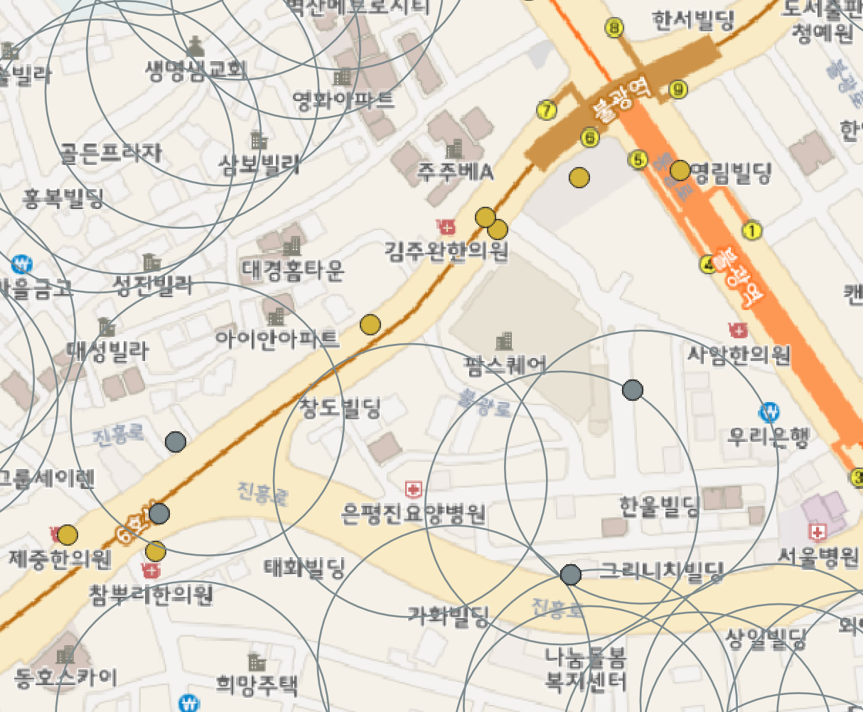 시설물별 반경 설정은 논문 등 자료에 근거