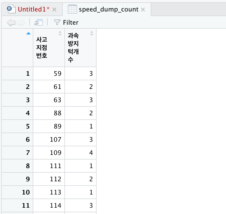 summarise(과속방지턱개수 = n())