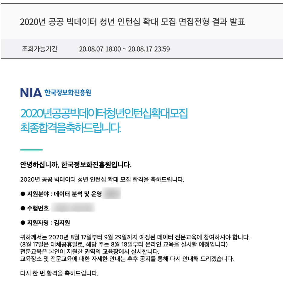 우연히 공고를 보고 접하게 된 공공 빅데이터 청년 인턴십